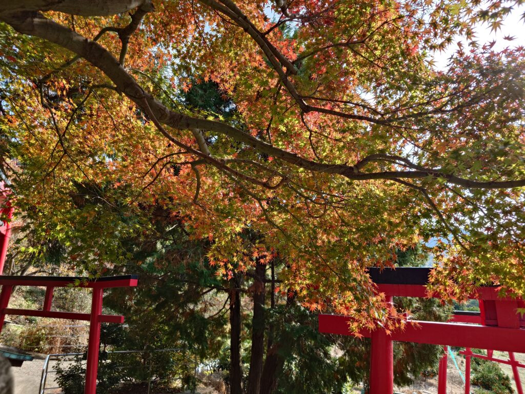 ※ 2枚目の写真:参道(石階段)のモミジ